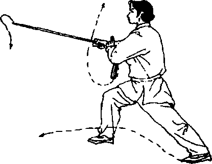 带剑运行路线不圆活。应让习练者左带时,成弧形带剑。