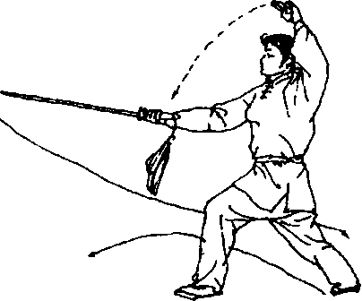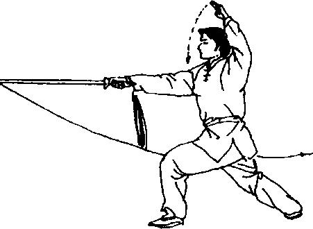 ② 弓步与带剑要协调一致,上体不可前俯或突臀。