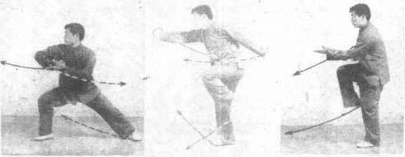 右足尖外摆,左足提起? 视右前方,面向西(图六- 189、 190>。