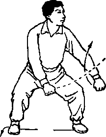 身体左后转,左脚向后撤一步,右脚掌随之里摆仍成正 裆.同时,两臂内旋,两拳 随体转向左下方伸摆。左拳 位于左膝外侧,右拳俾于裆 前,拳心都向里,目视前方0 (图 1-13) 1 动作要领:左脚后撤和 左拳横拦的动作要同时完 成。 攻防方法:设对方用右 脚踢我左腿,我用左臂横向 外拦将其来脚挡出,然后顺 图1 一13 势上步,用刁手抄其腿将对方仍出.