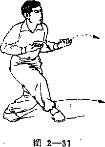 ①右脚经左脚前向左前方横上一步。同时,两刁手外旋 收至胸前,手心向上。(图2-31) 在右脚上步着地时,左脚蹬地跳起向前纵一步。同 时,两刁手内旋向前钴出,手心向下。目视前方(图2-32) .动作要领纵步时劲在右腿,身要前冲。起时身要横, 落时身要顺。 攻防方法:设对方用右拳击我胸部,我右掌将其来拳拨 出,左掌击其右肩如对方抽拳后退,我即用箭步击.
