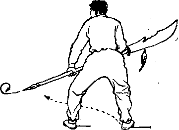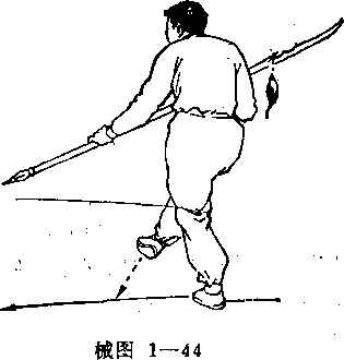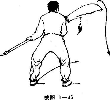 前向左划弧外拦,刀身斜置有腹前(械图1 一43 )