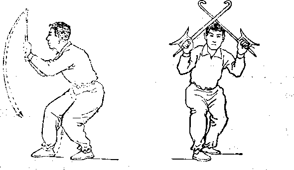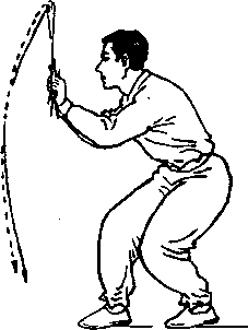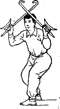 ⑦身体稍向下蹲.同时,两钩交叉下压,目视前方(械 图4-33 )