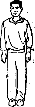 势者,是拳路练毕,而表示结束 之姿态,就叫收势。本拳路之开始,以面 朝东立为例,经过二〇—个动作,又恢复 了原位,仍然面向东立。这在前人传授,