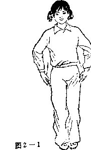 动作分解 两腿伸直,两脚靠搲;两臂垂于身体两侧,两手五指并拢 贴在腿侧;面朝南,成立正姿势站好(见图2 — 1 ) 要领说明 头要端正,下颏内收,眼向前平视; 挺胸,直腰,松肩,两臂自然下垂;精神 贯注,呼吸均匀,神情安静。