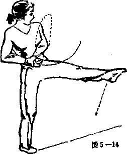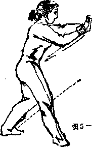 动作分解 ① 右脚向前上一步,两腿微屈膝,同时,右拳变掌,大拇 指分开,掌心向外,向右做习抓,眼视右手(见图5—3〉。 ② 上动不停。重心移至右腿上,左脚屈膝提起并向前躏 出,力点达于脚外侧;同时,右掌向上拧转后变拳收回腰间抱 拳,拳心向上,左手紧握右腕,眼向前平视(见图5—14), .要领说明 拧膝、旋臂、刁抓与踹腿要连贯,上下配合协调,踹腿先 屈后伸直。