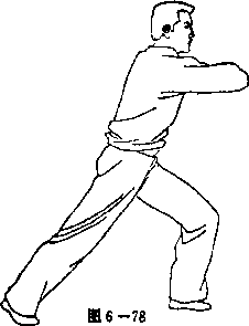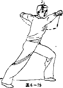 叠,同时,左脚后退一大步眼看右 拳(’如图6—80 )。