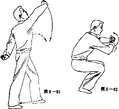 左拳在上,右拳在下,眼着左拳(如图6—82)。