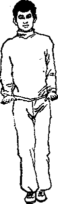 动作分解 两脚并拢,两脆伸直立定,头部正直,舌抵上腭,唇齿相 合,虚领顼劲,沉肩垂府,含胸拔背,两臂肘微屈,两掌心朝 下,手指朝前。眼向前平视(见图9一1)。 要领说明 图9一 1图9一 1以鼻呼吸,要求呼吸自然,不论呼或 吸,均应徐徐而行,切勿操之太速,或屏压 抑制;吸气时,用意识导引至丹田,呼气 时,再由丹田慢慢向上出之鼻孔,这样每次 做深呼四至六次。 图9一 1 图9一 1