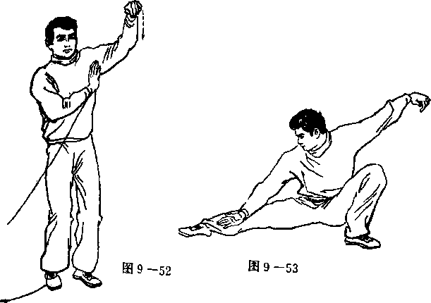 尖虚点地面。此时为吸气。其余与 分解动①③相同,唯方向相反 (见图 9 一52、53、54)。