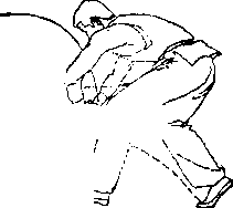 :上步,抱臂与蹬腿、提臀、顶肩动作同时完成,腰背发 力,以气催力。