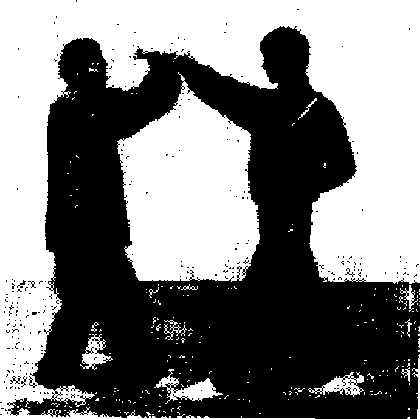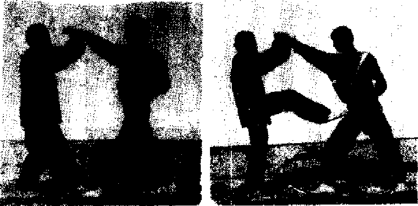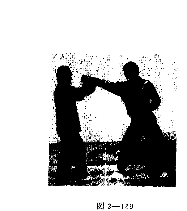 (一) “十”字架挡甲方用“心冲拳”攻击乙方头部,乙方上右步成虛步,同时 用两拳在面前“十”字架挡。(图3—(二) 架挡变擒拿甲方用右拳攻右乙方头部,乙方先出双拳“十”字架挡(图 3 —190),随即右乎外旋,身体卜沉右‘转拿其腕(图3—191),图 3—190图 3—191图 3—190图 3—191甲方用“右冲拳”攻击乙方头部,乙方用双拳“十”字架挡 (图3192),随即起右脚弹击甲方腹部(图3—193)。图3…192 图3 193