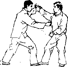 (2) 乙左手随即下按,截压甲左崩拳,同时左脚后撒