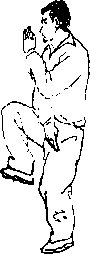 12. 金鸡上架势 动作同鸡形练习第5势,惟方向相反。