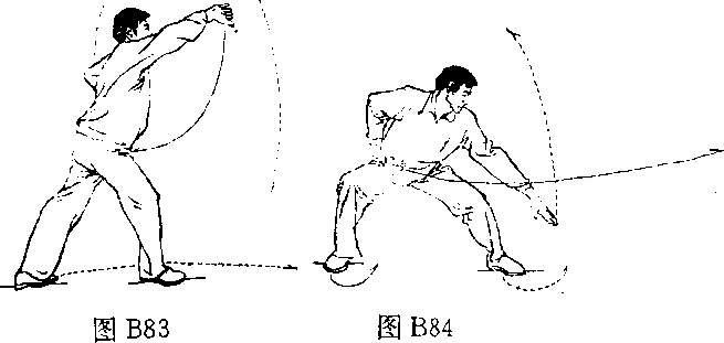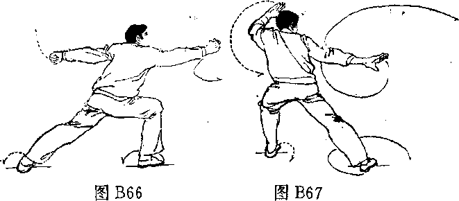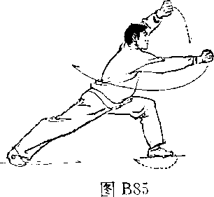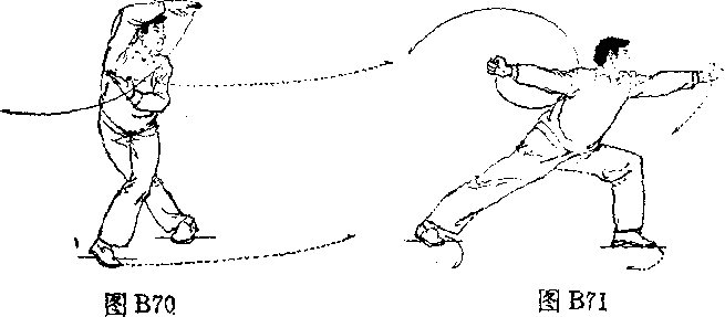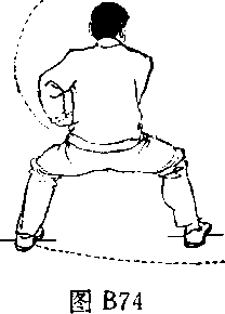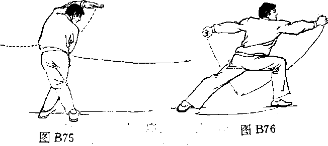 (1) 练法动作与第40势 (右闪炮”相同图72、73、 74 7576)