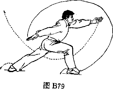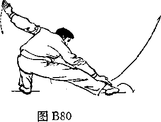 (1) 图B77练法:动作 与第22势“花韦炮胃相 同。(?77、8、79、 80) 〇