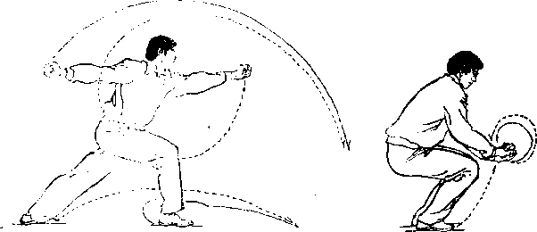 (2) 要点:与第81势“并步击地捶”相同,唯方向相反。