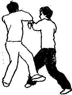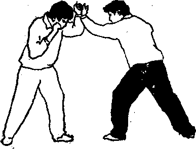 敌如以拳脚向我袭来(或我以前手诱击敌面,敌 必招架),我则就势采拿其腕,并借其前冲之势将其