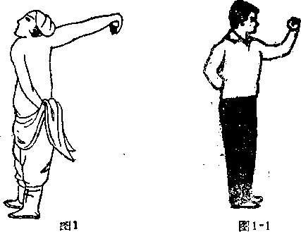 懒扎衣是一个开门架势,就象现在拳术套路中的 起势动作。所谓懒扎衣,是指习武者在临敌时不慌不 忙,慢撩衣衫的动作,体现了习武者艺髙胆大,临危 不惧的英勇气慨。松溪内家拳术中的许多路子都是以 懒扎衣为开门架势的,但其动作略有不同(图1一 黑裤为我方.下同)?
