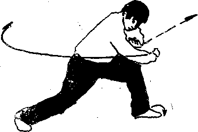 (1)紧接上势,身体略起,左脚向右侧窜进 右脚向右侧出步(图3—44) ?