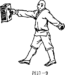 2. 左手举铁锁或杠铃片平伸,上下举数十次(图10 —10).