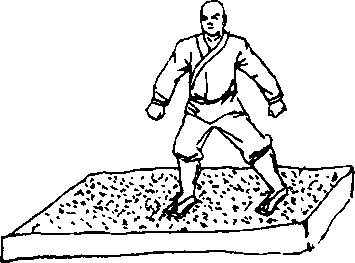 1〇 找一沙坑,每天早、中、晚三次练习在沙坑中行走,循 序渐近,从每次走2〇〇步増至仰〇步、200步.600步,长期 坚持必见功效(图10—31 )。 1〇