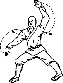 实战应用:此势多用于崩击侧面或后追之敌。如敌从后 面赶来,我用反掌崩击敌档部、小等处,是转身击敌之 法.