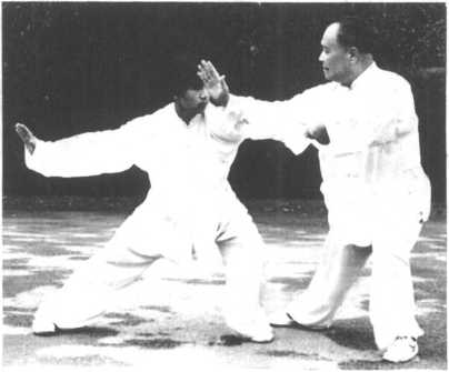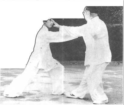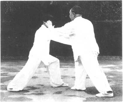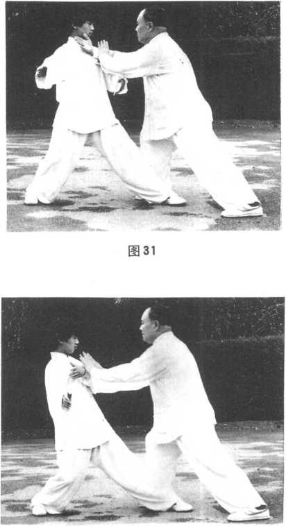 并未被我抱,仅 为我搂开,复又 向我进攻,我即 以搌、挤、按之 势予以应用,故 抱虎归山势其中 包括搌、挤、按 (图 28?32)。