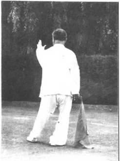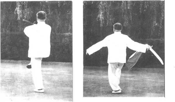 抡刀弹跳动作是否能够完成 得好,主要是由整体协调、相互 配合的好坏决定的。因之在完成 每一式动作当中,都要强调整体 协调和相互配合的问题。关于弹 跳之高与低,不作强求,只要整