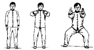 (1)空胸沉气(2)搂膝横踏掌(3)马步顺式踏(4)回身挑踏