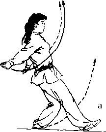 至侧上方变勾手。左腿屈膝控于腹前。(如图) ②上步式:双臂上摆,右脚向前一步蹬地起跳, 左腿屈膝提至胸前,继而起跳腿尽量向前上弹 踢,脚面绷平,至高点时左手掌拍。③助跑式: 为击步或垫步后起跳。落地方法有自然落地和 单起单落。 (章王楠)
