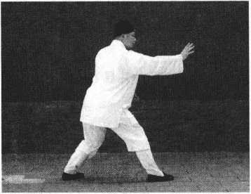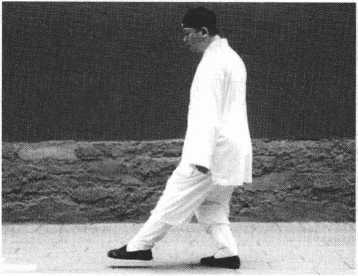 【动作十二】右脚向西方迈出 一大步,左脚随即跟进(微外斜,