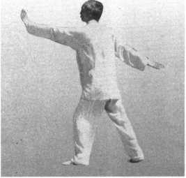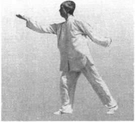 左右摆掌要贴身,走立圆,眼随手动。插步时,身体稍右 倾。
