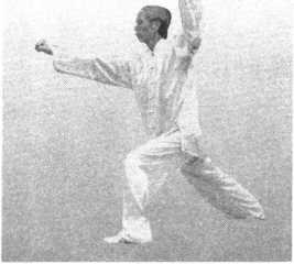 挑拳时再握拳,两肘下沉,左脚尖微内扣。