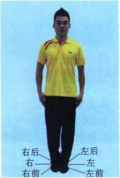武术图解的运动方向,是以图中人(图2-1-1)的躯干姿势为准,并且随着躯 干姿势所处的位置变化而变化。图中人的身前为前方(在叙述动作过程时简称 “前”),身后为后,左侧为左,右侧为右;前方向左偏45°称左前,前方向右偏45°称 右前,后方向左偏45°称为左后,后方向右偏45°称为右后。各种套路的预备式,前 后左右的方向是以图中人的躯干姿势为准。转体时,方向随着转后的变化而变化, 即转后的身前还为前,身后还为后,以此类推。武术动作很多,且运动较为复杂,但 始终以躯干姿势确定方向,不受头部、视线以及器械的影响。需要指出的是侧前方 与侧后方虽确定为侧方45°位置,在实际动作演练时只是一个约数,唯表明动作位 置而已。另外,在传统武术图谱中,很少有前后左右的动作方位术语,多有东南西 北方位术语,如起势“面南而立”,手“西南方位”等等。在传统武术读谱学习中一定