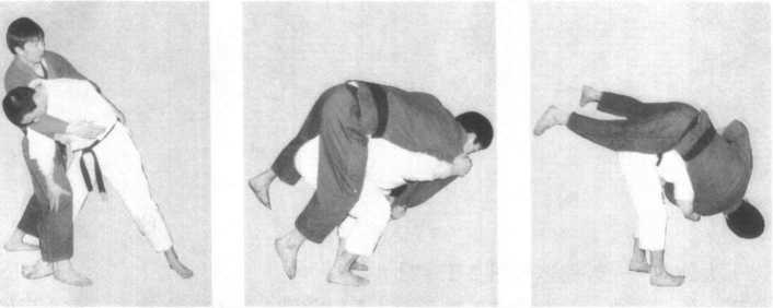 使用一本背负投时,若对方为了防守而降低身体重心,则随即改变自己的身体姿 势,使用背负落进攻对方。关键是底手要拉紧。一本背负投不仅可以连接背负落,也可 以连接小内刈躺刀等技术动作。