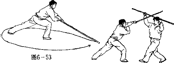 【用法】我扫敌脚,敌必下护,我则乘机掉把转袭敌 头(图6—54 ) 0