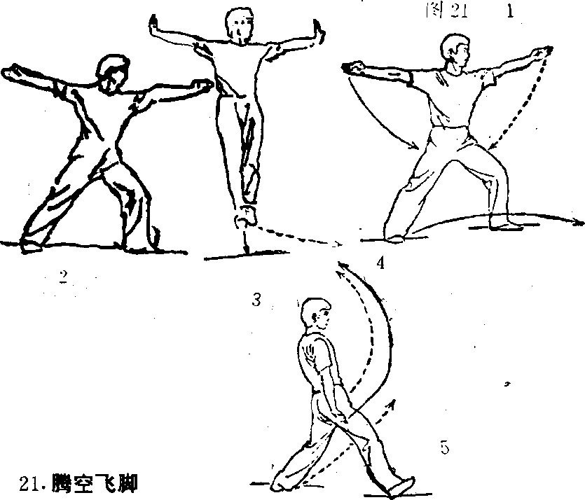 (4) 右左脚依次落地。(图21④)