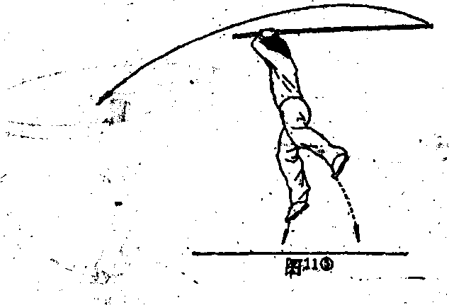 手持棍继续向左平抡。(图11@) 、