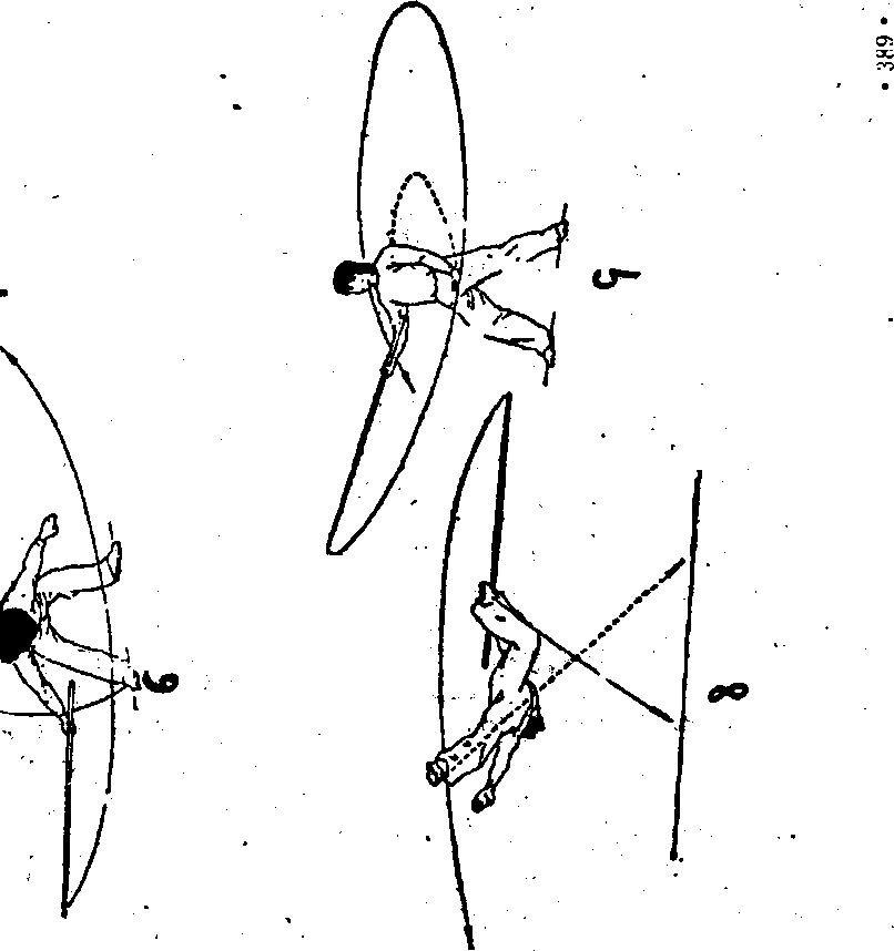 (8) 左脚蹬地跳起,并向上摆动,在空中身体平旋一周;同时,
