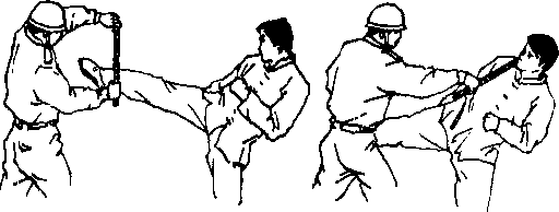 当暴徒起右腿,用脚侧弹踢我左肋时。我立即向前上右