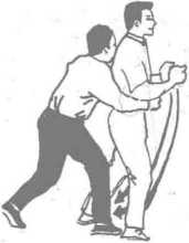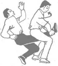 S 21 S 21 敌上右步从你背 后双手将腰抱住(图 21). 图22图22你迅速弯腰,同 时你两手抱拉住敌插 于你裆部之腿(图 图22 图22 22), 此后你用两手上 拉,臀部下坐于敌膝 反关节之合力将敌摔 倒(图23). 然后你立即起身 转体,两手顺势抓举 敌右脚腕(图24). 之后你速用右插 掌,向敌下阴穴猛点 (图 25).