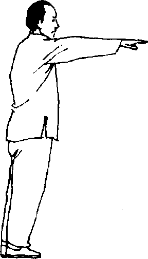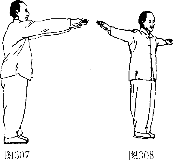 5. 两臂向体侧平展,与肩平,中指尖意念无限长,二目平 远视° (图302)