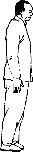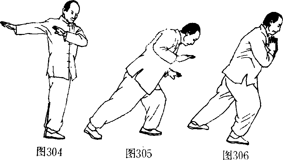 6. 两手自然向体侧落下,恢复预备势。(图303)