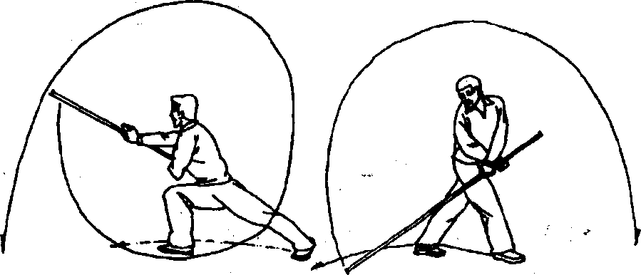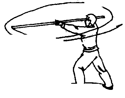 整个动作要连贯,棍把共绕行两周;左脚再跳不宜太高;两 手上举舞花时,不要握得太紧,并都向棍身中段滑擦,以便顺利 地做舞花动作。
