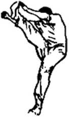 另外还有吊腿上升这样的腿部柔韧性练习,如图57。做这 种练习,可以用绑着滑轮的长绳作支撑。用活套套住脚,拉绳 了的另一头,直到腿部韧带可以承受而又不致损伤的最大限度。 在整个练习过程中,要尽量使腿成一直线,这一练习,有助于 完成高位侧踢法。在这些练习中,两腿要轮换做。