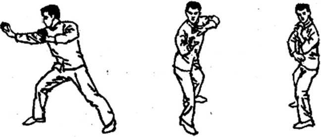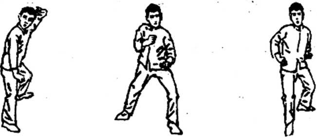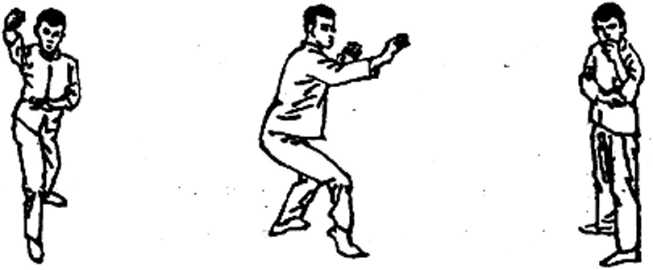 图90:两手置于髓部,身体和头部完全暴露、容易被击中。 由于后脚处于十分别扭的位置,使裆部毫无必要地暴露出来,