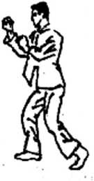 图88:如图85中猫式站立姿势那样,身体重量过多地压在 后脚上,这样就限制了向前运动的灵活性。特别是吾两脚站位 较宽、而又为了打出一拳时,就不得不把身体重心移向前脚,但 这就暴露了进攻的意图。 … '