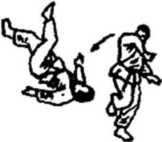 双脚摔法就是控制住对方双脚使其倒地的一种技术。它和 我国散手技击中的过桥摔差不多。如图793?796和图797、 798。一共二招。
