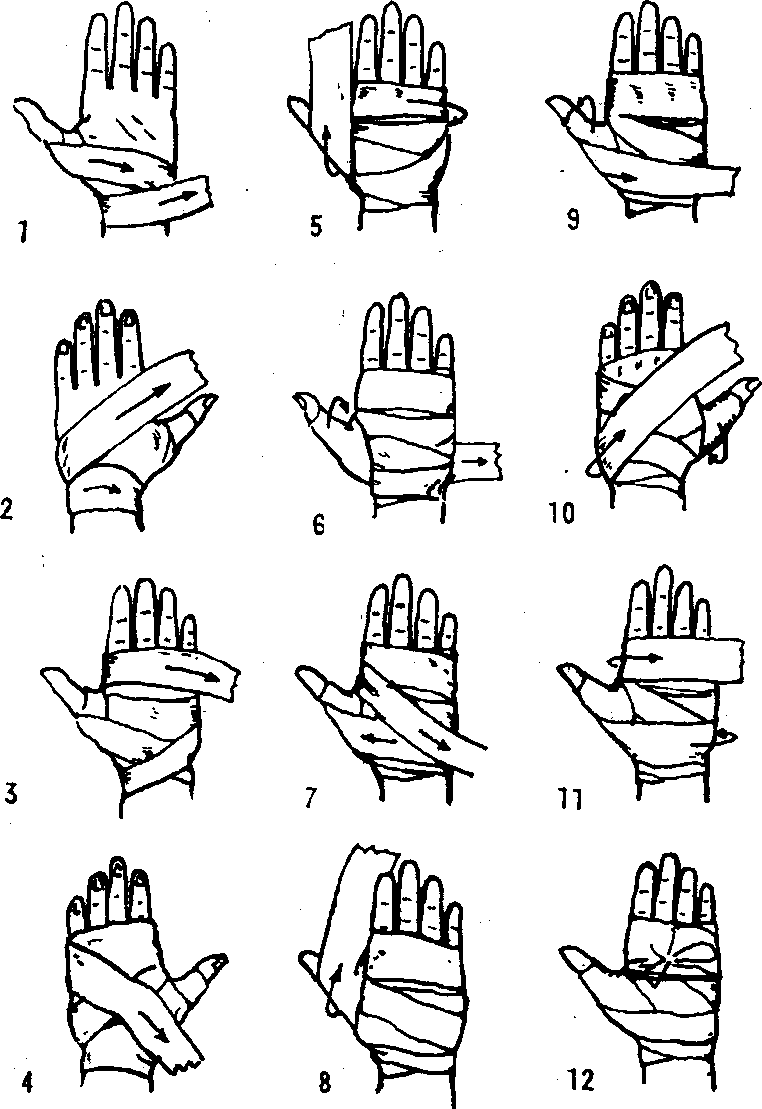 在拳击运动的外行看来,拳击手带一厚厚的拳套,握紧 拳头,就与对手比赛了。其实不然。在训练和比赛时,拳击 手的手上还缠着一层护手绷带呢!而有些初学拳击的人虽然 知道要缠上护手绷带,但对于护手绷带的作用没有更深的实 际体会,常常马马虎虎,往往是比赛时缠上,训练时怕麻烦, 干脆不缠,因而出现了许多本应避免的挫伤、擦伤、打伤等 外伤事故,影响了训练,给自己也造成了许多痛苦。